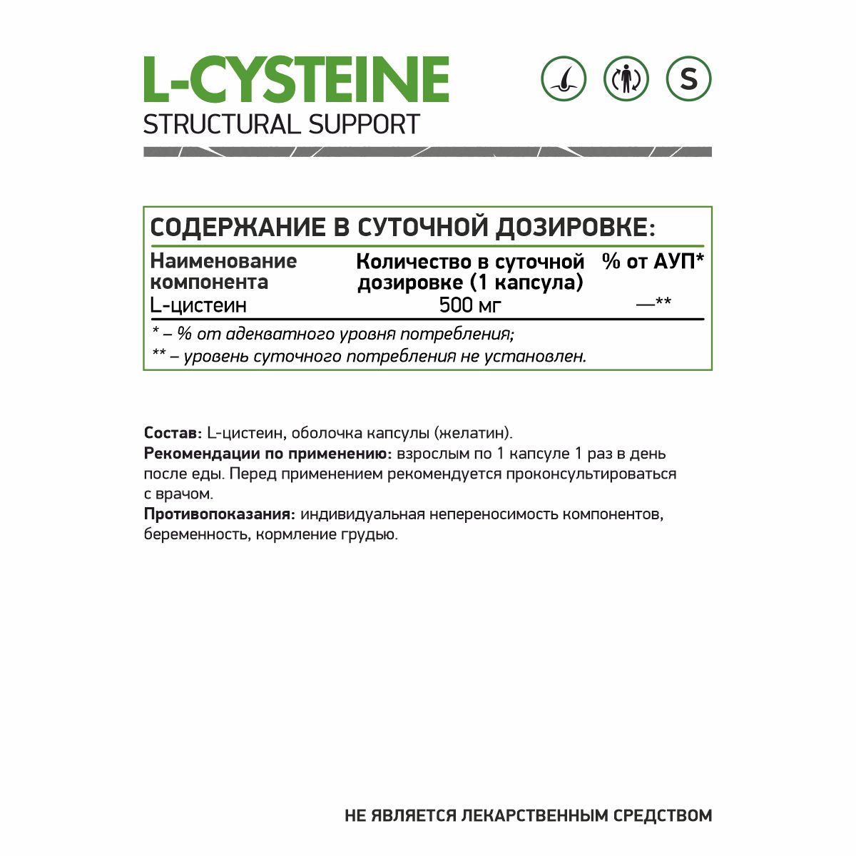 | L-цистеин | 500 мг | - |